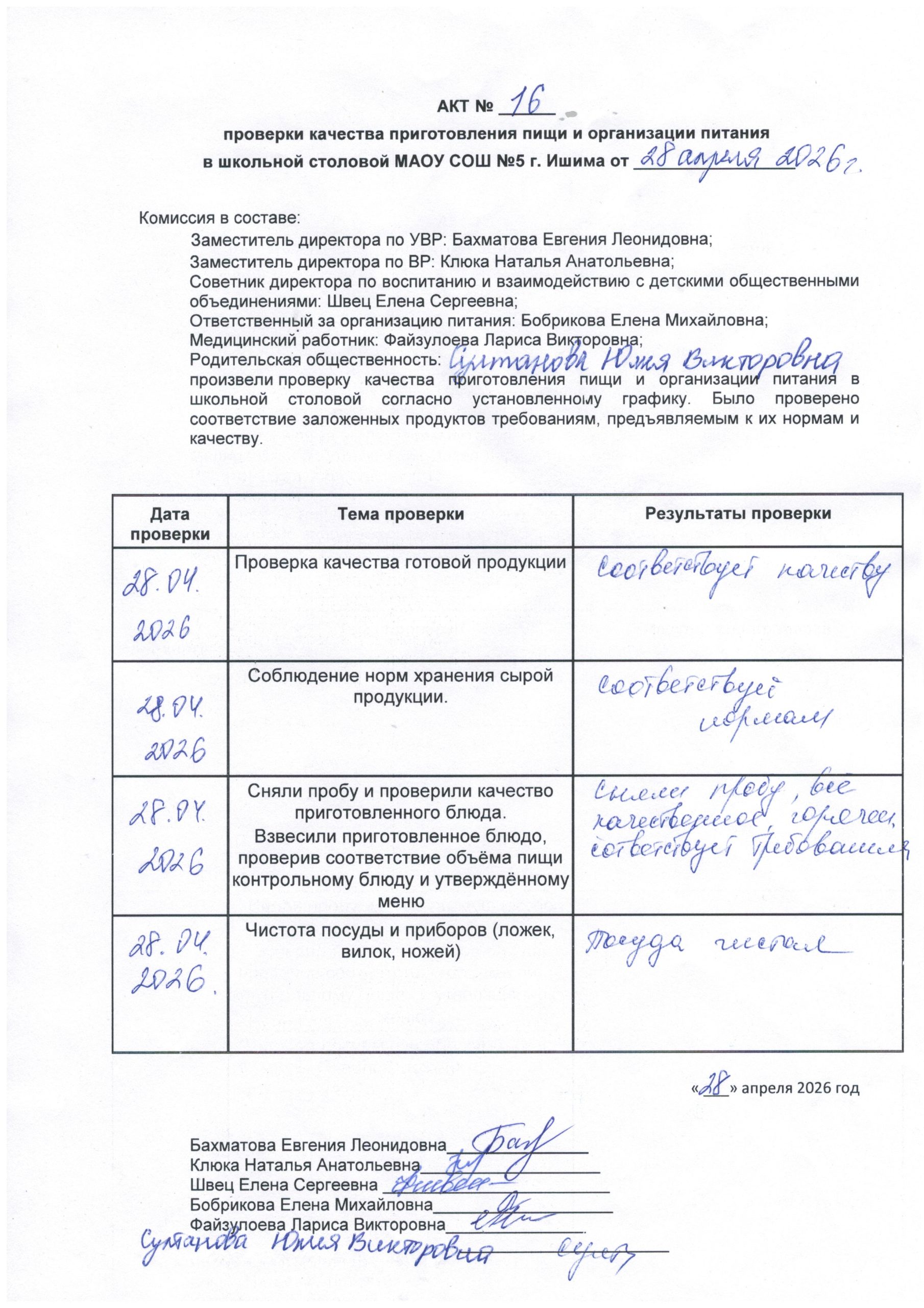 Ознакомьтесь с актом проверки качества приготовления пищи и организации питания от 24.04.2026